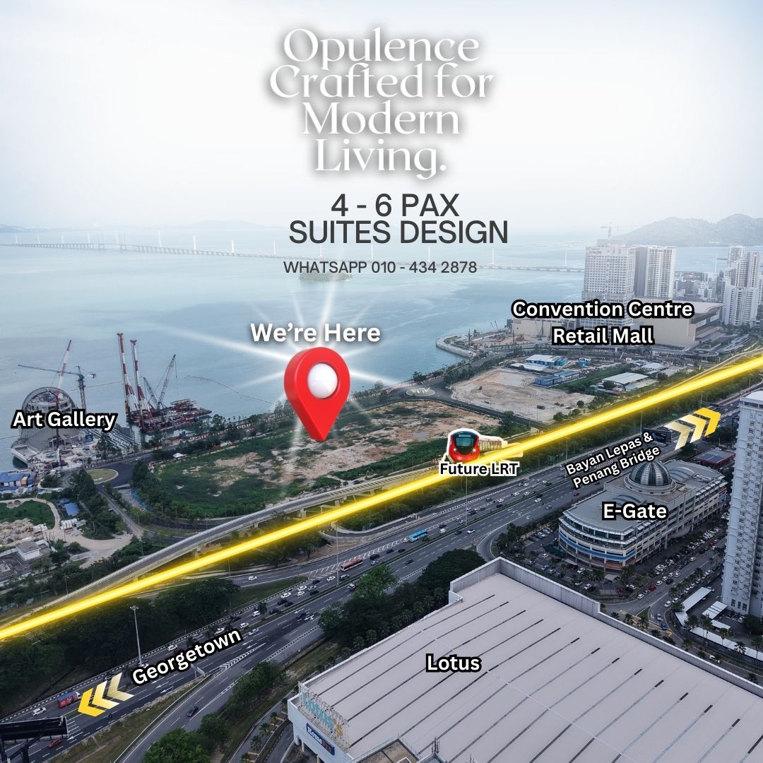 Our project is poised to benefit from one of the most promising and strategically connected locations in Penang. Situated just minutes from the Penang World Convention Center (PWCC) masterplan, the development will enjoy the long-term spillover effects of a thriving waterfront township featuring hotels, shopping malls, office towers, healthcare centers, and residential enclaves.